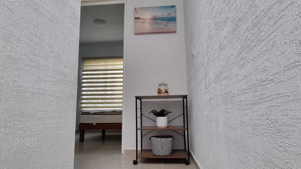 DISTRIBUCION: Sala con mesa de centro y Mueble con TV Cocina Integral con estufa y campana Anaqueles Licuadora, tostadora ,cafetera Refrigerador Lavadora Patio de -servicio 2 Recámaras con camas matrimoniales 2 1/2 Baños canceles, espejos 3 Aires acondicionados AMENIDADES Alberca , camastros sombrillas Juegos Infantiles Jardín UBICACIÓN Cercano a la estación TREN MAYA DE PLAYA DEL CARMEN