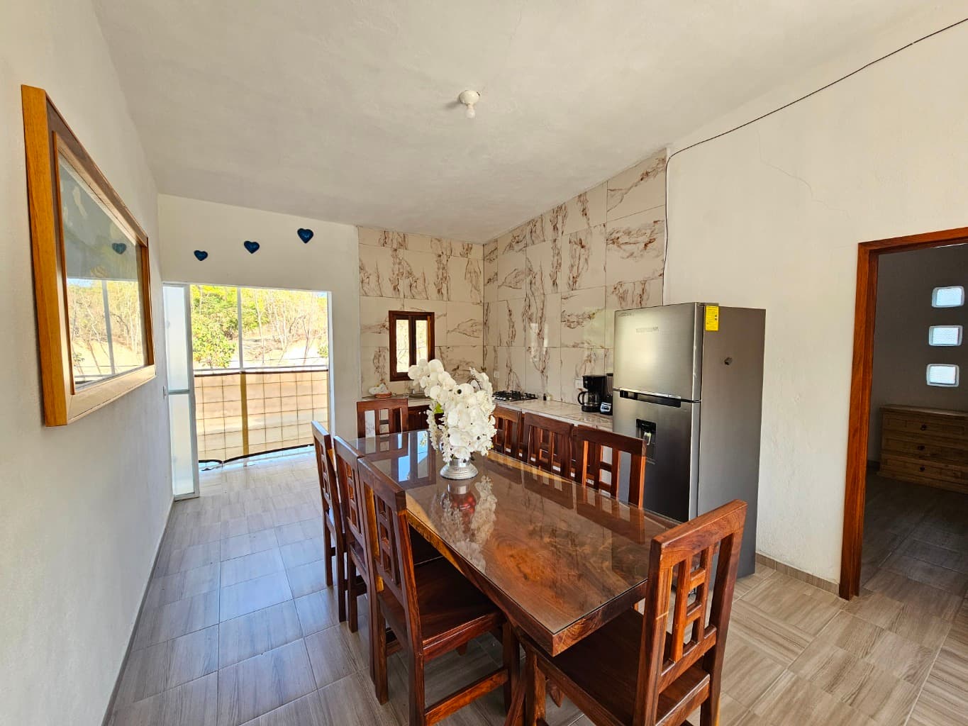 Rancho La Hermosa Características: - Superficie de terreno: 800 m2 - Superficie de construcción: Aprox. 550 m2 - Edad: 1 año - 2 niveles - Estacionamiento para 4 vehículos Distribución planta baja: - 1 recámara - 1 baño completo - Cocina - Comedor - Sala - Terraza frontal con mesa y hamaca - Jardín - Terraza trasera con área de asador y horno - Bodega - Medio baño exterior - Cuarto de lavado Distribución planta alta: - Acceso independiente - 3 recámaras - 3 baños completos - Cocina - Comedor - Sala - Área de juegos con billar Equipamiento: - Ventiladores de techo en todas las áreas. - Aire acondicionado tipo inverter en sala de estar, sala de juegos y cada una de las recámaras. - Pantallas de TV en sala y cada una de las recámaras. Servicios incluidos: - Mobiliario completo incluyendo cubertería, ropa de cama y toallas de acuerdo con el inventario que se levante al rentar la propiedad. - Agua (toma municipal) - Servicio de Internet, independiente para cada una de las plantas - Servicio de jardinería y de limpieza una vez por semana Adicionales: - En la propiedad vive el perro del propietario, es educado y sociable. - Se aceptan mascotas en la propiedad siempre y cuando puedan convivir con el perro. - Se solicita depósito en garantía equivalente a 1 mes de renta. - Para firma de contrato se solicita el pago del mes 1 y mes 12 de renta. - Contratos a largo plazo únicamente.