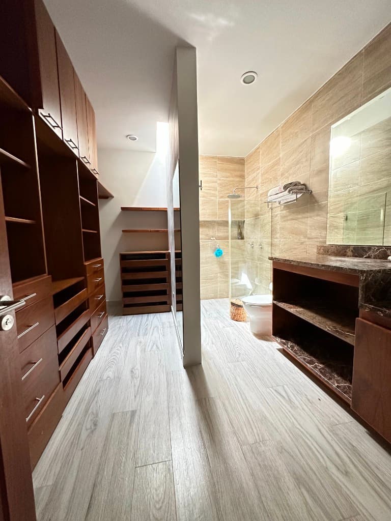 Bienvenido a esta encantadora casa en renta en Tulum, donde la serenidad se fusiona con la exuberante naturaleza caribeña. Disfruta de las impresionantes playas de arena blanca, los fascinantes cenotes y la rica cultura maya que rodea esta cautivadora ciudad. Sumérgete en la energía relajante de Tulum, donde la vida cotidiana se mezcla armoniosamente con un estilo de vida tranquilo y saludable. Vive el equilibrio perfecto entre la comodidad moderna y la belleza natural en esta casa en renta en el paraíso de Tulum. Características de la propiedad: - Recamara Principal: Cuenta con recámara para bebé y baño propio con closet amplio y caja de seguridad. - Recámara con baño en planta baja: Tercera recámara con baño en planta alta - Cuarto de servicio con terraza en tercer piso, así mismo cuarto de lavado. - Estudio independienteal otro la do de la casa con baño y cocineta. Este puede ser una quinta recámara u oficina. - Todas las áreas hacen un total de 6 recámaras, cada área con baño propio. - Cocina completamente equipada con acabado de granito Estufa con horno, microondas, cava, tostador. Así mismo cuenta con área de lavado de vajillas interno. - Cuenta con 2 estacionamientos techados y cerrados. Un estacionamiento frente a la casa. - Alberca común cuenta con 1/2 baño y área de descanso con asador. - Cuenta con circuito cerrado, paneles solares, electricidad y suavizadores de agua. Amenidades: - Fraccionamiento familiar - Parques infantiles - Cancha de Fútbol - Cancha de Pádel Cercanías: - A 2.7 Km de la Col. Centro - A 5.1 Km de las Ruinas de Tulum - A 6.5 Km de la Zona Hotelera de Tulum - A 66.4 Km de Playa del Carmen