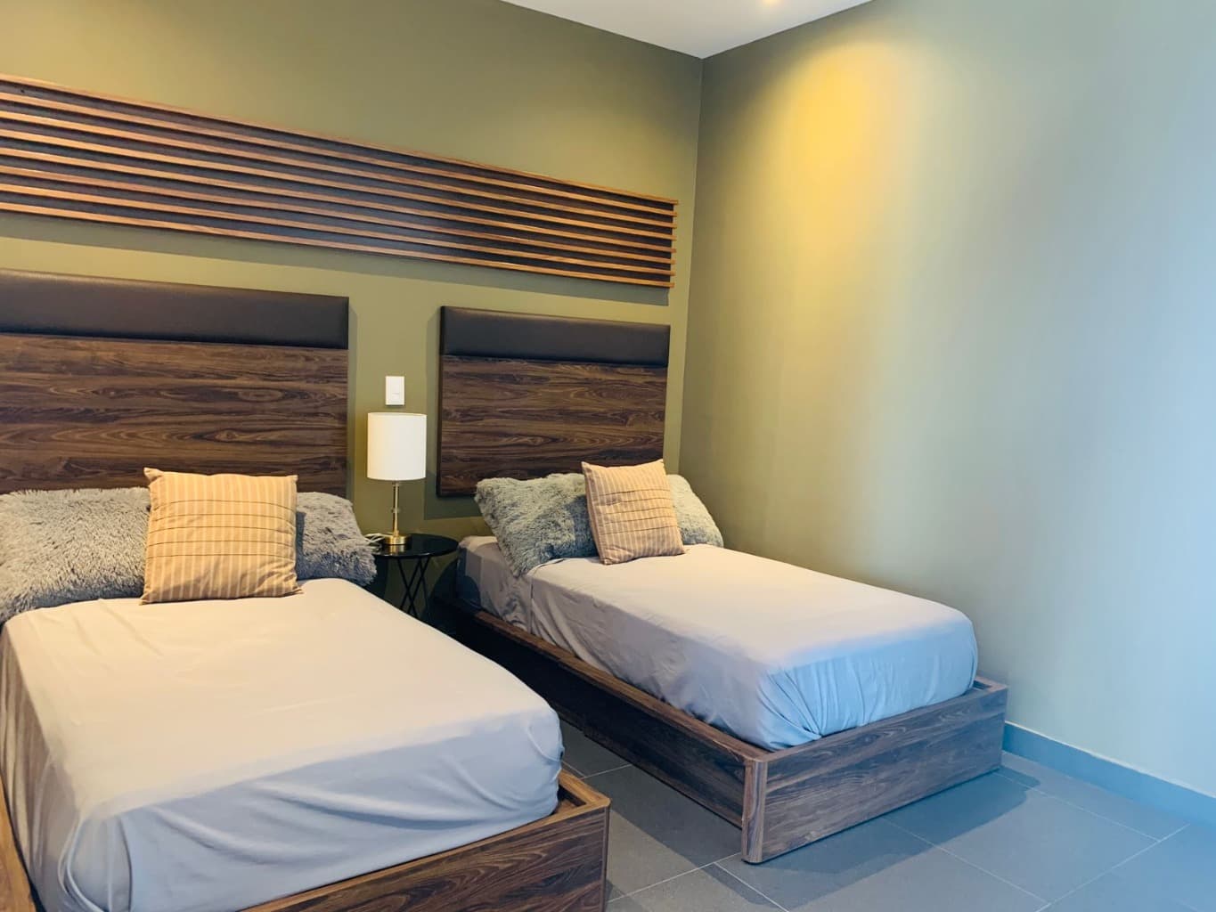 Departamento en Casa Tejada. Diseño único de Macías Peredo, torre con solo 26 unidades, en la zona más linda de la Col. Americana, enseguida del restaurante premiado Bruna. El desarrollo se compone de tres torres conectadas por un núcleo de circulación. Cada torre cuenta ventilación e iluminación en todos los sentidos. Amenidades (alberca y un roof top), áreas comunes, servicios y un lobby de ingreso. Ubicado en el Condominio Casa Tejada, Torre 3, se encuentra este amplio y acogedor departamento totalmente Amueblado y equipado. Cuenta con área de sala-comedor y cocina en un solo ambiente, con barra, medio baño, área de lavado con lava secadora, amplia terraza-balcón, de donde se aprecia una hermosa vista de la ciudad. Tiene 2 recamaras, cada una con baño y closet, instalación para mini Split de aire acondicionado, Dos lugares de estacionamiento en el sótano 3 en batería con portón eléctrico. El Condominio cuenta con elevador para cada torre, salón de usos múltiples, recepción, vigilancia las 24 horas. Básicos: Tipo: departamento Cuota de mantenimiento Incluido en el precio: 4,520.00 Terreno: 129.0 m² Construcción: 129.0 m² Medida de frente: 10 m Medida de fondo: 12.0 m Recámaras: 2 Baños: 2 Medios Baños: 1 Estacionamientos: 2 Año de Construcción: 2022 Nivel: 5 Cocina: integral Regaderas: 2 Características: Sala Comedor Balcón Agua Drenaje Luz Aire acondicionado Elevador Closets Parques cercanos Vigilancia privada con ingreso controlado. Alberca descubierta