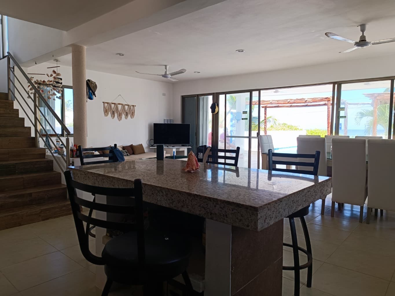 Bienvenido a tu paraíso personal en San Benito, Yucatán, donde el encanto costero y la comodidad se encuentran en esta impresionante casa de 5 recámaras con piscina. Ubicada a tan solo 40 metros de la playa, esta propiedad es un sueño hecho realidad para aquellos que desean vivir cerca del mar en un entorno tranquilo y sereno. Equipada y lista para habitar, esta casa te brinda la oportunidad de disfrutar de la vida en la playa en su máxima expresión. Distribución de la propiedad: • Planta Baja: - Amplia terraza con 2 ventiladores. - Comedor. - Sala. -Cocina totalmente equipada, con isla de granito y ventilador. -1 recámara con closet, aire acondicionado y ventilador. - 2 baños completos. - Cuarto de servicio con baño independiente y ventilador. - Terraza bar. - Piscina de 3.80 x 7 m y 1.20 a 2 m de profundidad. - Bodega. - Cochera con palapa y luz, para 3 vehículos. - Área de lavado. • Planta Alta: 4 recámaras: - Recámara 1 con vista al mar, baño completo, closet, aire acondicionado, ventilador y balcón. - Recámara 2 con vista al mar, closet, aire acondicionado, ventilador, balcón. - Recámaras 3 y 4, con closet, aire acondicionado y ventilador. - 1 baño completo. Equipamiento: - Internet - Calentador eléctrico – - Agua potable. -Cisterna de 5,000 L. - Pozo. - Pérgolas - Malla anticiclónica en planta baja. Puntos cercanos y atractivos de la zona: - A 22 minutos del Puerto de Progreso (24 km). - A 15 minutos de la zona Arqueológica de Xcambo (13 km) - A 40 minutos de la ciudad de Mérida (50 km) -A 60 minutos del aeropuerto de la ciudad de Mérida (70 km) Forma de pago: Aparta con: $50,000.00 Tiempo para saldo: a la firma de escritura final de venta. *Precio y disponibilidad sujeto a cambio sin previo aviso. «Tu hogar es nuestra prioridad, confía en los que saben» «Te acompañamos en este viaje, de principio a fin»