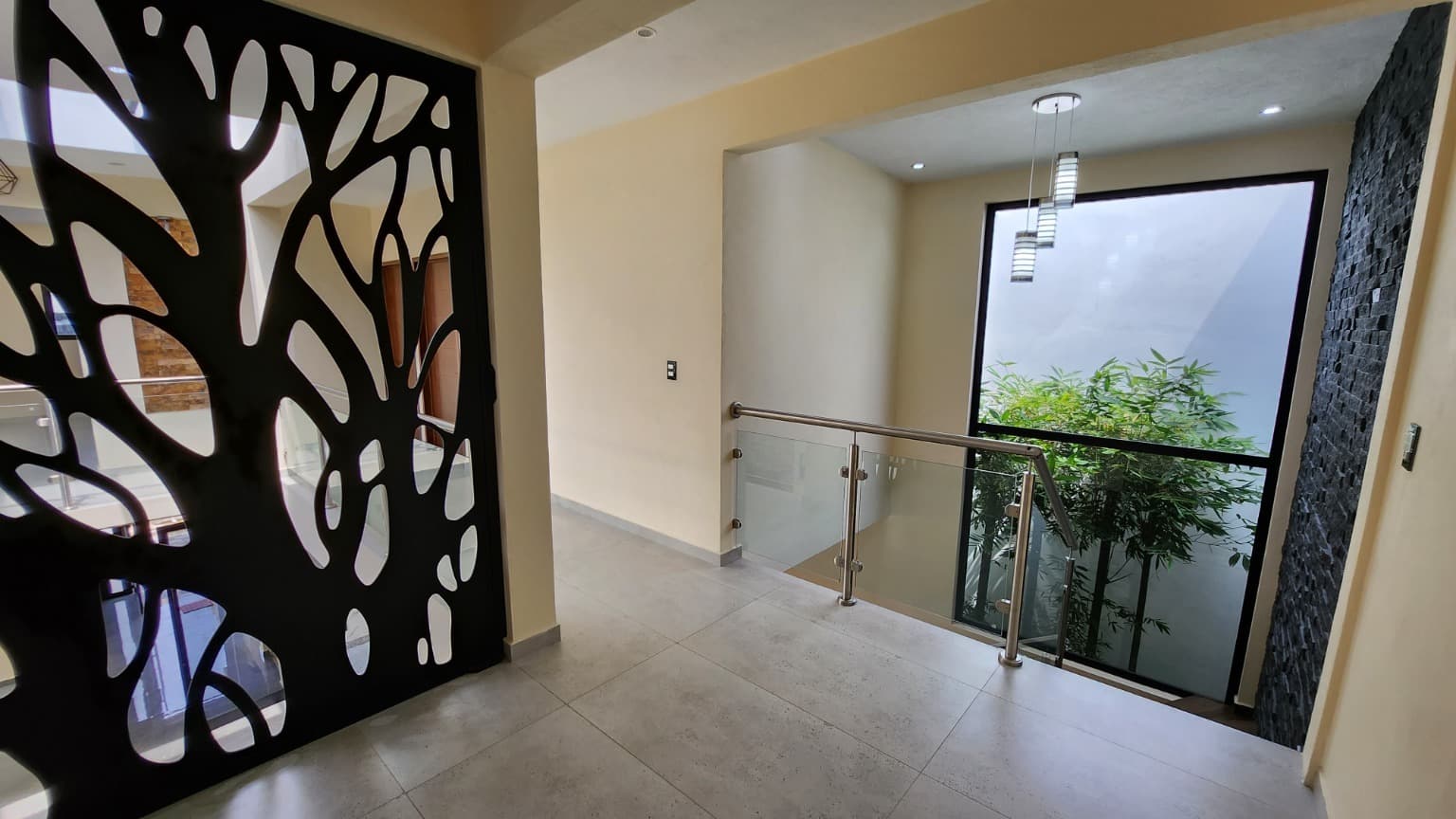 Casa en venta en calle cerrada, a media cuadra de Av. Lerma y de Tecnológico. P.B.: - 2 lugares de estacionamiento cerrados, - Sala, - Comedor - Jardín y terraza, - Área de lavado techada y con instalación de lavadora, - Medio baño, - Cocina integral con barras de granito, estufa y campana, - Jardín decorativo interior, - Escalera flotante con barandal de cristal templado de 10mm, y acero inoxidable, - Pequeño jardín interior decorativo. P.A.: - Área de oficina, - Baño completo, - Recámara secundaria con closet, - Recámara principal con baño, vestidor y balcón, - Área de tv abierta. Sala comedor de doble altura, lámparas decorativas, led en toda la casa, muros decorativos de piedrín, presurizador, calentador de paso, pisos de porcelanato, y loseta tipo madera, lavadero, celocia decorativa, calentador solar, cisterna de 10mil litros, video portero, cerradura electrónica y manual. En las operaciones de crédito el precio total se determinará en función de los montos variables de conceptos de crédito y gastos notariales que deben ser consultados con los promotores, conforme al apartado 5.6.7 de la NOM-247-SE-2021.