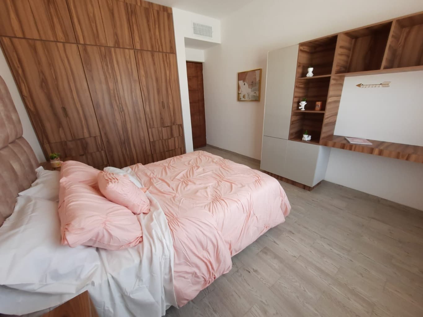 Distribución: Espaciosa sala-comedor, cocina, área de lavandería, medio baño en Planta Baja, pasillo de servicio, amplio patio, cochera techada para 2 autos. Planta alta: 3 recámaras, principal con baño y vestidor, recámaras jr comparten baño INCLUYE Cocina integral con cubierta de granito Vestidor Recámara Principal y 2 Closet Recámaras Jr. Preparación para mini split Preparación de Aire Lavado Hidro Puerta de pasillo de servicio Cisterna 2800 Litros Preparación Gas Natural y Gas Estacionario Piso InterCeramic Malla Electrificada Barda Perimetral 3.20m2 Sistema Inteligente