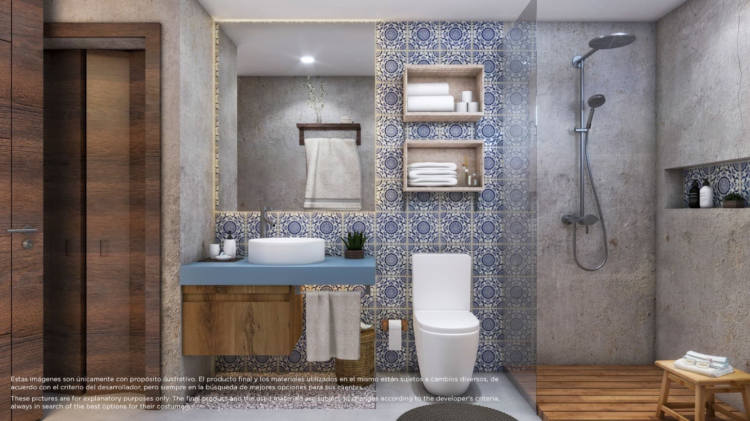 DESCRICION DEL COMPLEJO El proyecto cuenta con 4 niveles más roof top con amenidades exclusivas. En planta baja contará con un estacionamiento para bicicletas y scooters, y un lobby para control de acceso, además de un sistema de circuito cerrado para mayor seguridad de nuestro propietarios y huéspedes. Amenidades: -Recepción -Seguridad -Solárium -Zona Común -Piscina -Ascensor -Area Yoga -Pool bar DESCRIPCION DE LOS DEPARTAMENTOS Estudio y departamentos 1 recamara 1 baño por un total entre 41 y 52 m2. Es parte de un complejo que cuenta muchas amenidades. Precios entre 150 503 USD y 184 236 USD. TULUM Tulum es un paraíso con hermosas playas, que combina lujo y tradición. Estarás rodeado de naturaleza y de los restos de una importante ciudad maya. Es la mezcla perfecta de lujo, modernidad e historia. Además, la proximidad del aeropuerto internacional de Cancún le confiere una gran apertura turística. El turismo es una importante fuente de crecimiento e inversión. Especialmente el clima óptimo de Tulum, la selva que encanta a todos los sentidos y la calidez de las aguas claras del Mar Caribe. El rendimiento de la inversión es sin duda uno de los más altos del mercado. Está entre el 8 y el 14% del beneficio anual. Por esta razón, es uno de los mejores rendimientos de la inversión en la Riviera Maya.